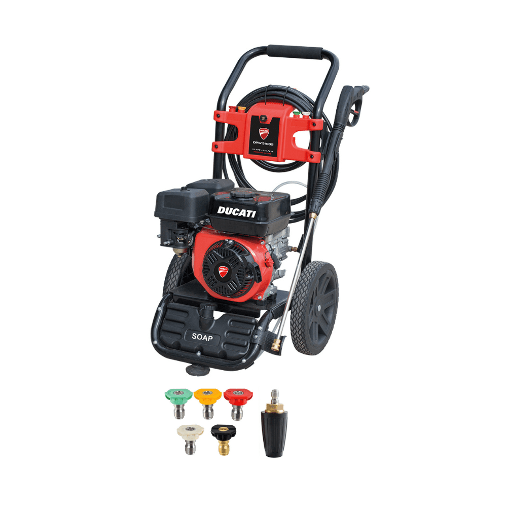 Hidrolimpiadora a gasolina Ducati DPW3100G diseñada para limpieza potente y continua en trabajos exigentes. Motor de alto rendimiento que entrega presión estable para eliminar suciedad incrustada en vehículos, maquinaria y superficies difíciles. Funcionamiento autónomo sin cables, arranque fiable y construcción robusta para uso intensivo. Equipo pensado para quien necesita potencia real y resultados profesionales en cada limpieza.